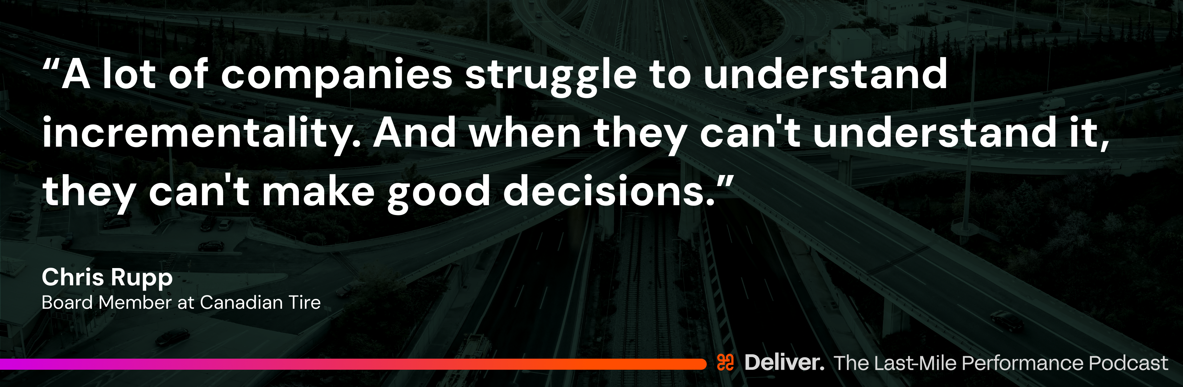Chris: I'll say promise reliability again. But I'm going to say something completely different as well. Incrementality. A lot of companies struggle to understand incrementality. And when they can't understand it, they can't make good decisions. If you have to debate whether adding same-day delivery got you incremental customers, and someone just says, "I'm sure those people would have come to the store anyway," then there's no belief in incrementality. You have to be able to do the math to show whether you've got it or not. And you have to spend the time and energy necessary to get that right.