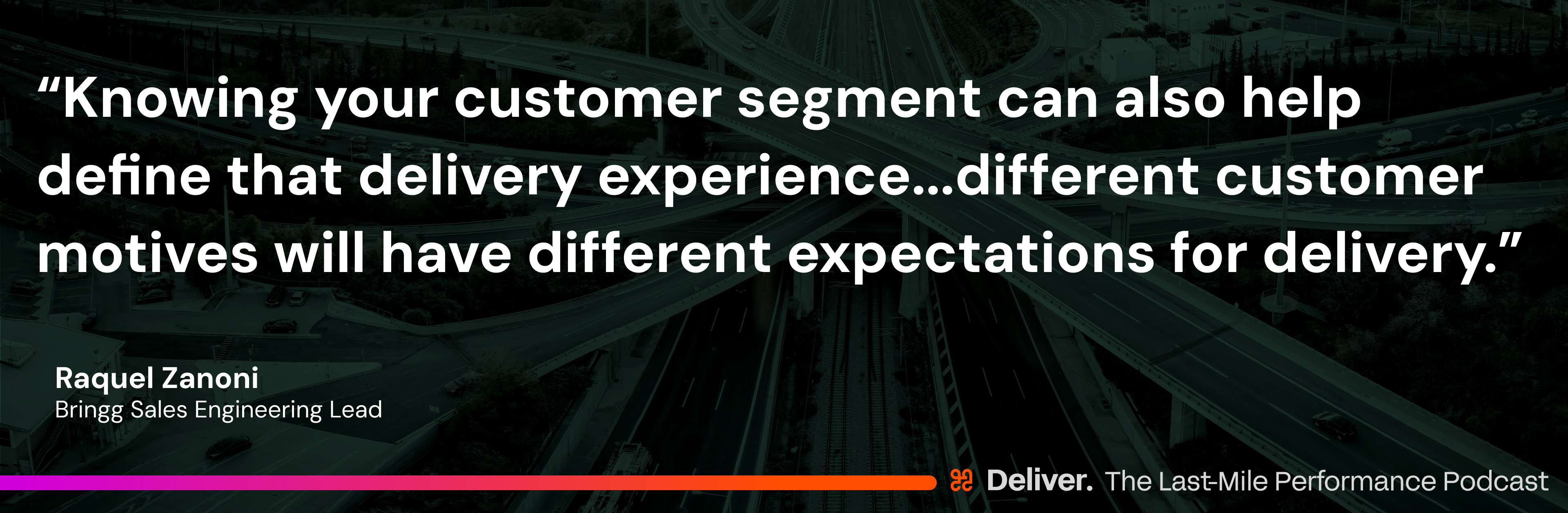 Raquel Zanoni: So there's an operational side of that. But knowing your customer segment can also help define that delivery experience because different customer motives will have different expectations for delivery. With a lot of the retailers that tried to stand up same-day, not only could they not operationally handle it, but oftentimes people just didn't need it. I don't need a sweatshirt in two hours. It's not a huge revenue driver. So that's an interesting piece of the customer segmentation, mapping out delivery to customers' expectations and motives.