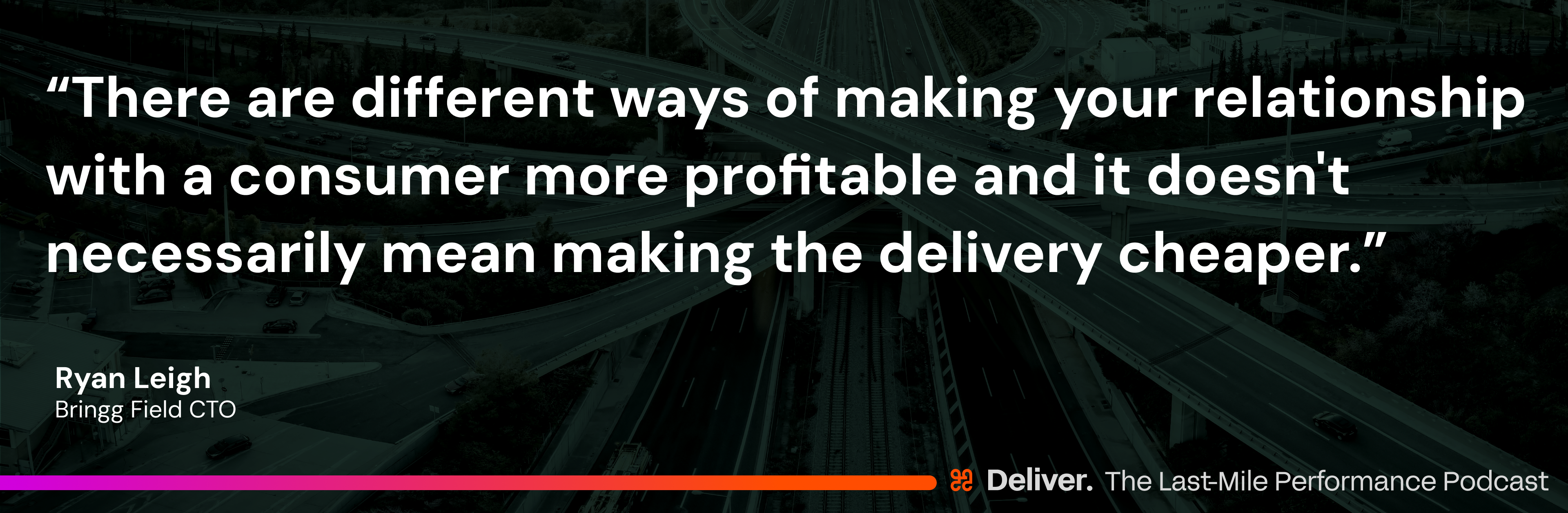 Ryan Leigh : When we talk to retailers, they talk about profitability of delivery. But what they really mean is making a delivery more profitable by reducing cost to create a larger margin. There are different ways of making your relationship with a consumer more profitable and it doesn't necessarily mean making the delivery cheaper. It could be incentivizing that consumer to shop with you more regularly, both physically and online, and joining the dots between those different transactions. It could be considering all the data points I mentioned earlier, especially the long-term, CRM data around the relationship with that consumer.